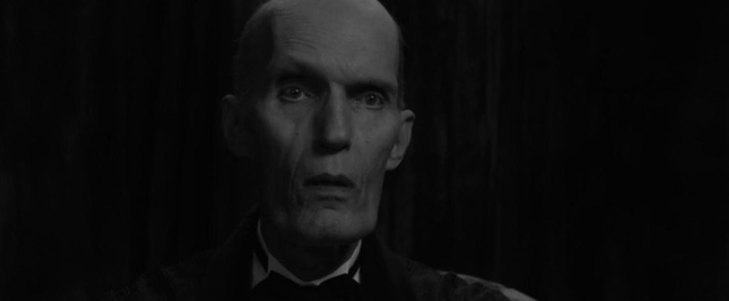 The Giant and Cooper are sitting in a room. Everything is in black and white and feels very much like Eraserhead. Both are sitting in chairs similar to chairs that are in the Red Room. The viewer never gets a full look at the room, instead the shots are focused on the characters and also a gramophone which sits behind Cooper. Behind them appears to be a wall of some sort but it’s hard to make out if it’s a an actual wall or maybe even curtains.