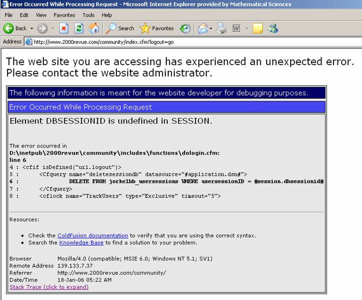 CCC: have youi received anymore errors like that. Go ahead and send the HTML page to jorkel@2000revue.com Leo's Girl - the avatar error you received is now fixed. I also removed the image from your post due to size and because it contains website stuff I don't want available.