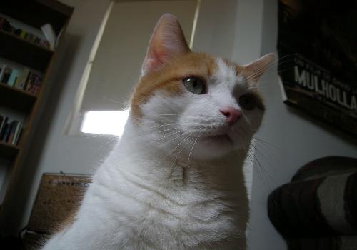 I now have just four cats. My fifth (and oldest) cat finally kicked it just before the fest this year. She made it to 14 years, which is awesome. Got her for my 18th birthday, so it was a bit sad when she died, but I was also OK with it because she's just been really lethargic and creaky the last year. So there was a bit of relief in there. My remaining four cats are all still crazy little bastards. And I can't get any of them to huddle together long enough for a family photo, so I'll have to just give you four individual ones.