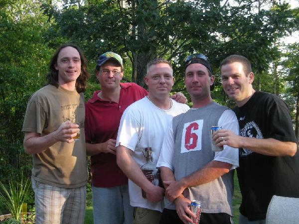 Here are some pics from my labor day weekend... Order of pics 1) and 2) Me, Mark, Scot, Mike and Chris (from the deck of the lakehouse) 3) and 4) the lakehouse and 5) beach from lakehouse (the view from the beach shows our firepit (by the picnic table) 6) and 7) Dahmer's cabin and lake from the cabin the rest of the photos are from the boat when Scot, Bill (Mark's Dad) and I went fishing on Labor Day (including one of the two 19" smallmouth bass I reeled in)