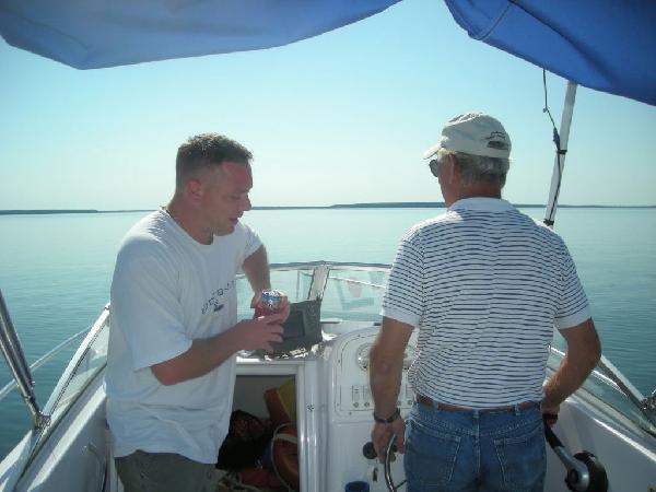 Thanks for the comments, folks! That's funny, Susan, what you said about Scot, because the general opinion in Nahma was that Mike was too close to the log. Upon reviewing the video, Scot was a tad high up there. Now that they are YouTube stars they can review the video and improve their techniques (Mike farther away and Scot lower?) for next year. It was a glorious getaway and Scot and I finally got to go fishing! We've been wanting to, but couldn't get a majority vote the last two years. All day out on the boat Monday, Scot and I kept joking about what a horrible time we were having (although we did get nice sunburns!) and Bill kept saying how Mark and the rest were going to throw up when they saw the size of our catch. We did well, 9 altogether. Scot got the first and then got victimized by gobies the rest of the day. Once I found the hot spot, Bill and I started doing much better.