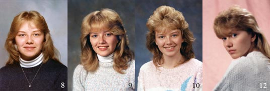 And I'll always defend that wig. I've posted the pic of my sister before... her hair looked just like that, and she doesn't wear a wig. The numbers in each image below correspond to the grade she was in. You can't tell me Sheryl Lee's hair looked that much different than some of those pics below.