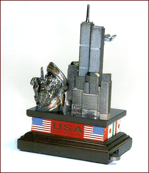 There's also this way of memorializing 9/11: A cigarette lighter! In June 2002, the Israeli Customs authorities at the Port of Ashdod uncovered and confiscated a shipment containing tens of cigarette lighters adorned with the defiant image of Osama Bin Laden against the background of the Twin Towers. When the lighter is activated, a flame appears in front of the towers, to which a miniature plane is attached. The shipment arrived from China in a container destined for the Palestinian Authority. The cigarette lighters were manufactured in China, by a company named Yings Technology, and addressed to Abdel Magid Co., a firm in Khan Yunes. This shipment of cigarette lighters is yet another manifestation of feelings of hostility against the United States and sympathy towards Bin Laden, prevailing in the Palestinian Authority. The Authority itself has done nothing to counter this phenomenon.