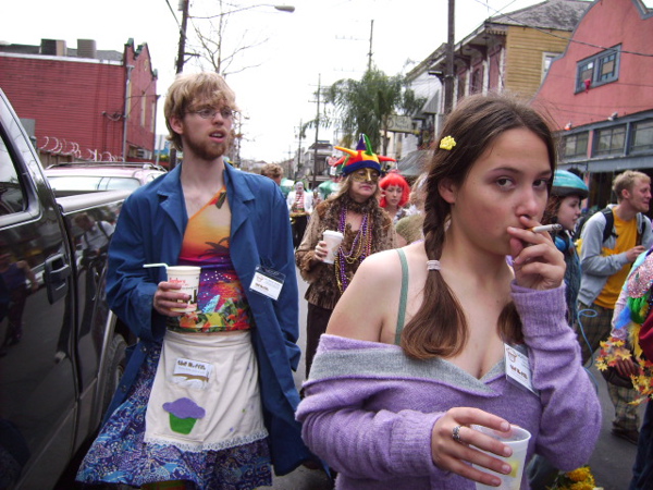 although it isn't a picture, this is a continuation on a theme this is from "The Noise Parade", which happened during mardi gras. It's the night which goes along with the pictures of me in a white dress/lab coat http://www.blender.com/video/963/MardiGrasNoiseParade2007.video