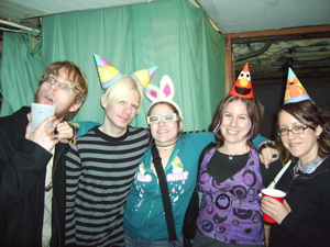 I am finally on the drunk thread. YAY!!!!! I don't know whether to be proud or ashamed. I'm pictured below in the middle with the blue sweater. I don't usually drink, but I decided I should drink to either a. keep from punhing my friend heather (not pictured) or b. have a decent excuse when I punched my friend heather