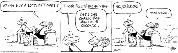 B.C. and Wizard of Id guy. Story here. I admit I couldn't really get into him anymore for the last 15 years or so -- though I did enjoy the absurdity of cavemen talking about Jesus -- but B.C. was one of my early favorite strips when I began paying attention to comics. Anyway, good for him managing to go on Easter. I had to go back a ways to find one I like...