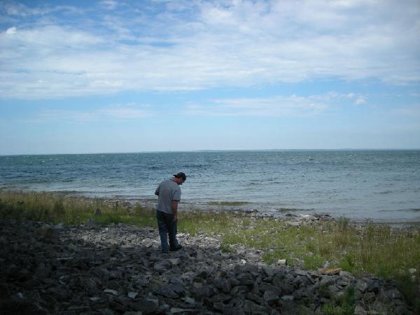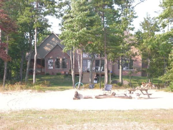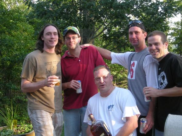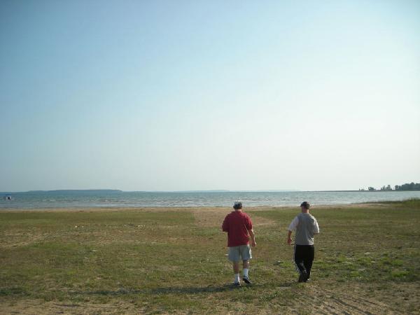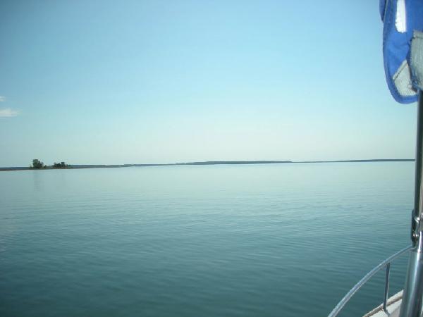 Here are some pics from my labor day weekend... Order of pics 1) and 2) Me, Mark, Scot, Mike and Chris (from the deck of the lakehouse) 3) and 4) the lakehouse and 5) beach from lakehouse (the view from the beach shows our firepit (by the picnic table) 6) and 7) Dahmer's cabin and lake from the cabin the rest of the photos are from the boat when Scot, Bill (Mark's Dad) and I went fishing on Labor Day (including one of the two 19" smallmouth bass I reeled in)