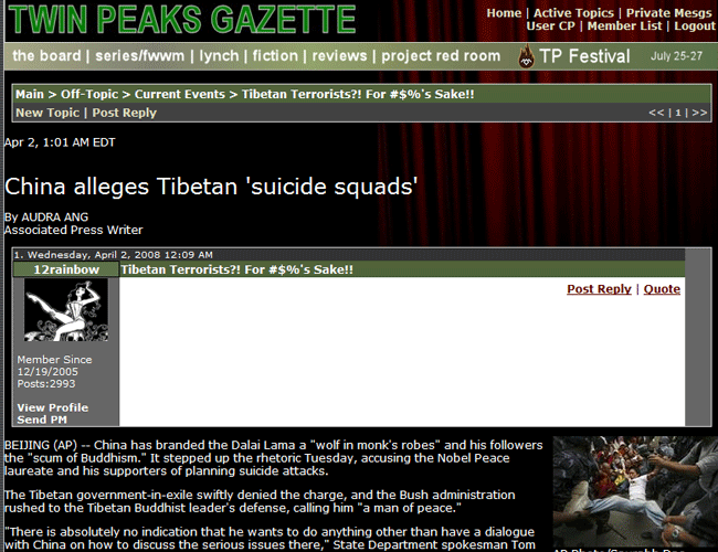 BEIJING (AP) -- China has branded the Dalai Lama a "wolf in monk's robes" and his followers the "scum of Buddhism." It stepped up the rhetoric Tuesday, accusing the Nobel Peace laureate and his supporters of planning suicide attacks. The Tibetan government-in-exile swiftly denied the charge, and the Bush administration rushed to the Tibetan Buddhist leader's defense, calling him "a man of peace." "There is absolutely no indication that he wants to do anything other than have a dialogue with China on how to discuss the serious issues there," State Department spokesman Tom Casey said. Wu Heping, spokesman for China's Ministry of Public Security, claimed searches of monasteries in the Tibetan capital had turned up a large cache of weapons. They included 176 guns, 13,013 bullets, 7,725 pounds of explosives, 19,000 sticks of dynamite and 350 knives, he said. "To our knowledge, the next plan of the Tibetan independence forces is to organize suicide squads to launch violent attacks," Wu told a news conference. "They claimed that they fear neither bloodshed nor sacrifice." Wu provided no details or evidence. He used the term "gan si dui," a rarely used phrase directly translated as "dare-to-die corps." The official English version of his remarks translated the term as "suicide squads." Wu said police had arrested an individual who he claimed was an operative of the "Dalai Lama clique," responsible for gathering intelligence and distributing pamphlets calling for an uprising. The suspect admitted to using code words to communicate with his contacts, including "uncle" for the Dalai Lama and "skirts" for the banned Tibetan snow lion flag, Wu said. Beijing has repeatedly accused the Dalai Lama and his supporters of orchestrating violence in Lhasa, the Tibetan capital. Protests which began peacefully there on the March 10 anniversary of a 1959 uprising against Chinese rule spiraled out of control four days later. Chinese officials have put the death toll at 22, most of them Han Chinese; the government-in-exile says 140 Tibetans were killed. China also says sympathy protests that spread to surrounding provinces are part of a campaign by the Dalai Lama to sabotage the Beijing Olympics and promote Tibetan independence. The 72-year-old Dalai Lama has condemned the violence and denied any links to it, urging an independent international inquiry into the unrest. "Tibetan exiles are 100 percent committed to nonviolence. There is no question of suicide attacks," Samdhong Rinpoche, prime minister of the government-in-exile in Dharmsala, India, said Tuesday. "But we fear that Chinese might masquerade as Tibetans and plan such attacks to give bad publicity to Tibetans." Experts on terrorism and security risks facing Beijing and the Olympics have not cited any Tibet group as a threat. Scholars said the claim of suicide squads was a calculated move by China allowing it to step up its crackdown in Tibetan areas. "There is no evidence of support for any kind of violence against China or Chinese," said Dibyesh Anand, a Tibet expert at Westminster University in London. Instead, Beijing is "portraying to the rest of China and the rest of the world: these people are basically irrational" and that there was no room for compromise, he said. Tuesday's accusations could also further divide the Tibetan government-in-exile and other groups like the Tibetan Youth Congress, which has challenged the Dalai Lama's policy of nonviolence, Anand said. "This is a way of pressuring the Dalai Lama to renounce Tibetans who have created violence," he said. Andrew Fischer, a fellow at the London School of Economics who researches Chinese development policies in Tibetan areas of China, dismissed Wu's warnings as "completely ridiculous." What China is trying to do "is justify this massive troop deployment, a massive crackdown on Tibetan areas and they're trying to justify intensification of hard-line policies," Fischer said. Drawing from a deep historical reserve of angry rhetoric, Tibet's tough-talking Chinese Communist Party boss, Zhang Qingli, recently called the Dalai Lama a "wolf in monk's robes, a devil with a human face, but the heart of a beast" and deemed the current conflict a "life-and-death battle." State media has denounced protesting monks as the "scum of Buddhism." The campaign against the Dalai Lama has been underscored in recent days with showings of decades-old propaganda films on state television portraying Tibetan society as cruel and primitive before the 1950 invasion by communist troops. The escalation of the rhetoric to include claims of possible suicide attacks may also touch upon another sensitive issue for China's communist leadership - unrest in Xinjiang, a predominantly Muslim region to Tibet's north, and Beijing's tight security measures in the area. On Tuesday, a local government Web site in Xinjiang reported that a protest has broken out in a market in the region on March 23. One official linked the incident to the unrest in Tibet. But U.S.-government funded Radio Free Asia, which first reported the demonstration, said the protesters were demanding authorities not ban headscarves, and that they stop torturing Uighurs and r -- edited by Jordan (for design reasons) --